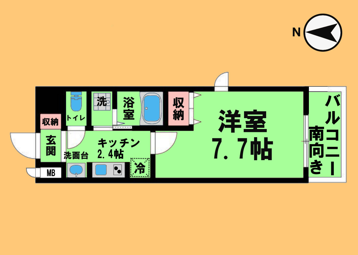 洋室 7.7帖/K 2.4帖 - 向き