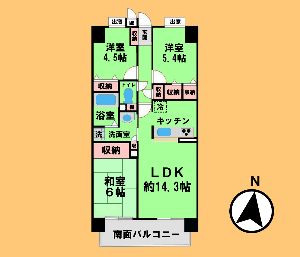 専有面積67.48㎡の3LDKです。